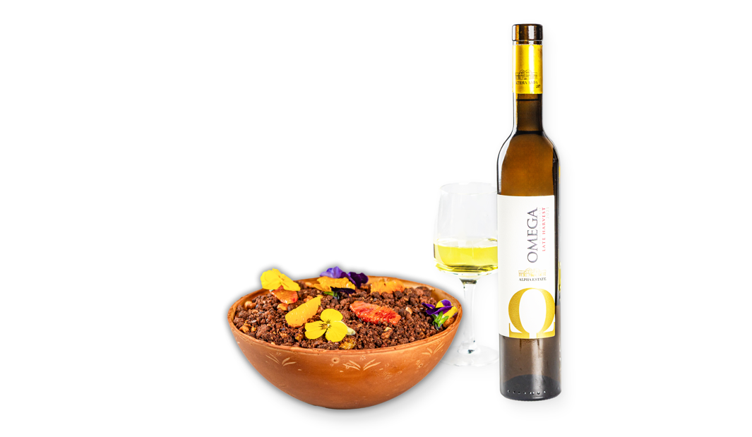 Ο επιδόρπιος οίνος του Κτήματος Άλφα, Ωμέγα Όψιμος Τρυγητός 2021 με ένα χαρμάνι από Gewürztraminer και Μαλαγουζιά συνεισέφερε σε αυτό το ξεχωριστό γλυκό χάπενινγκ μια μεστή αρωματική αγκαλιά που ευωδίαζε λουκούμι, τριαντάφυλλο και ώριμα φρούτα. Οι προσεκτικά επιλεγμένες πρώτες ύλες από την ασυναγώνιστη και ποιοτική γκάμα της ΑΒ Βασιλόπουλος ανέδειξαν το δείπνο.